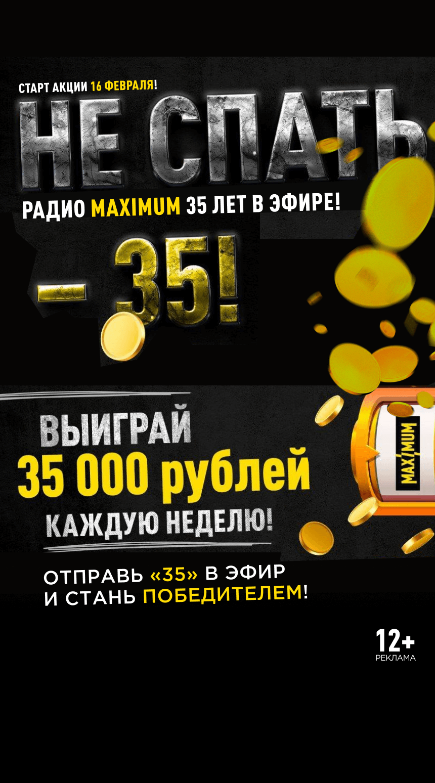 С понедельника по четверг, внимательно следи за специальными сигналами в эфире и стань 35-м слушателем, отправившим сообщение «35» в эфир.
